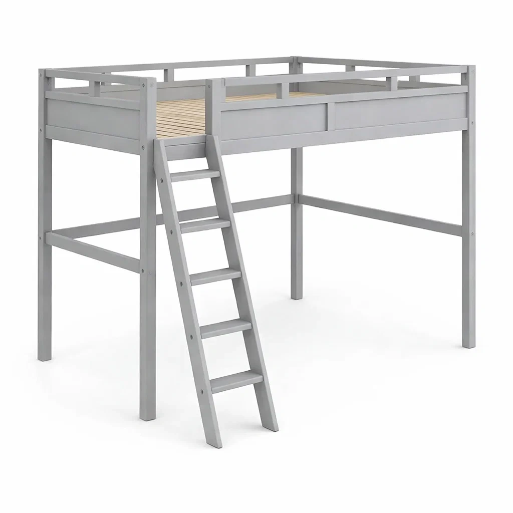 Lit mezzanine en bois gris avec échelle