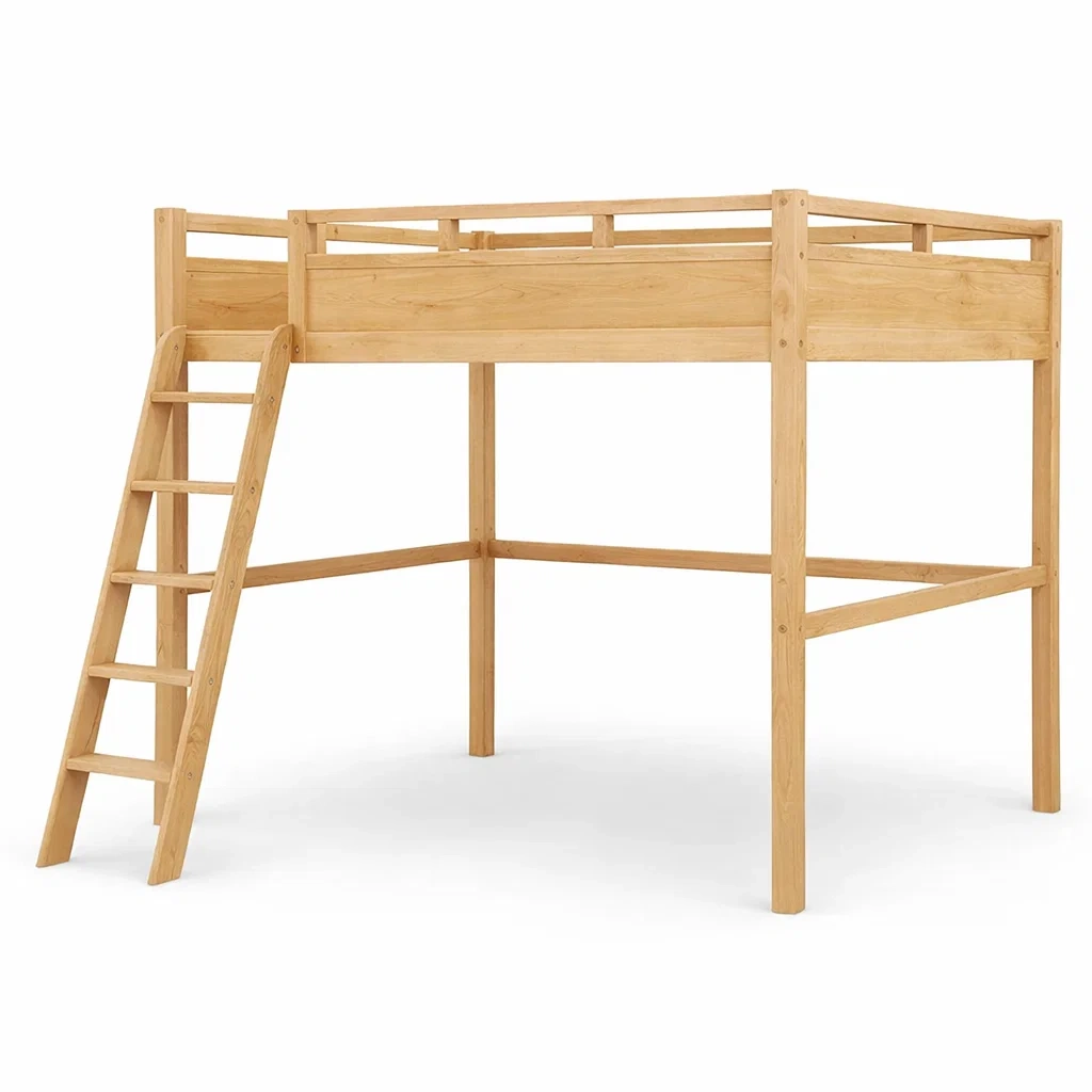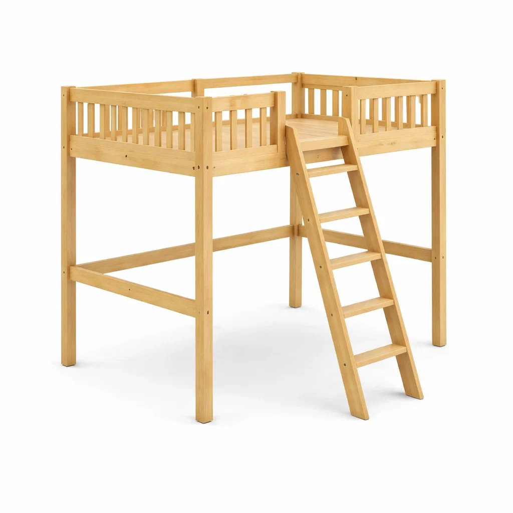 Lit mezzanine en bois de pin avec échelle