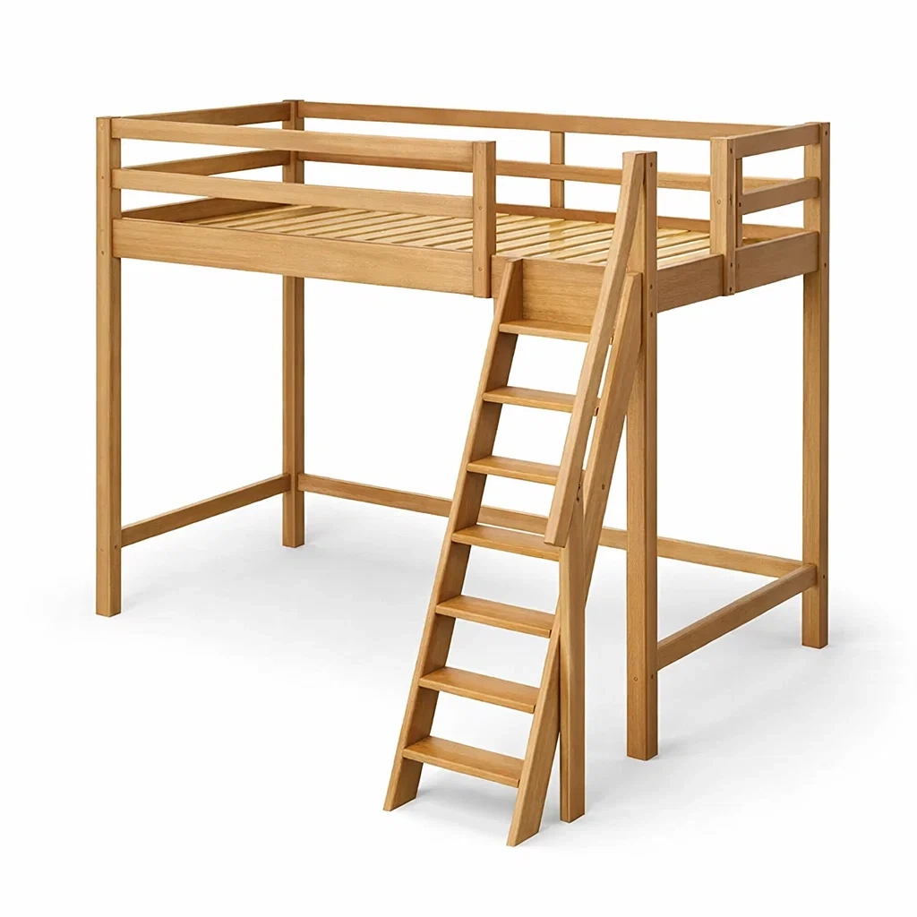 Lit mezzanine en bois avec échelle amovible