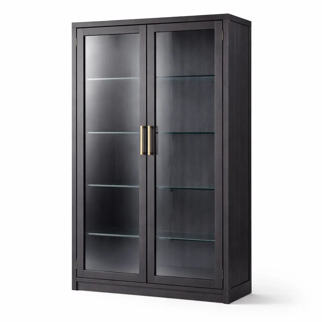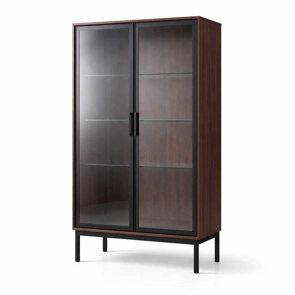 Vitrine en bois avec portes en verre trempé marron foncé