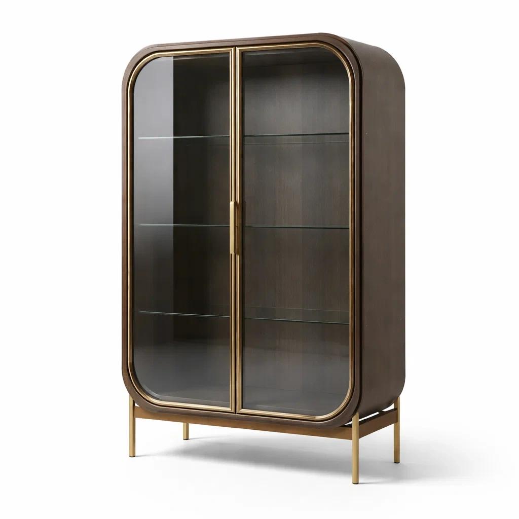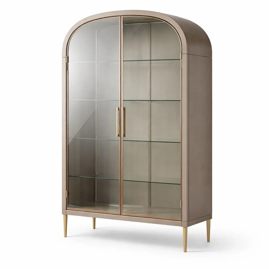 Vitrine en métal doré avec portes en verre arquées