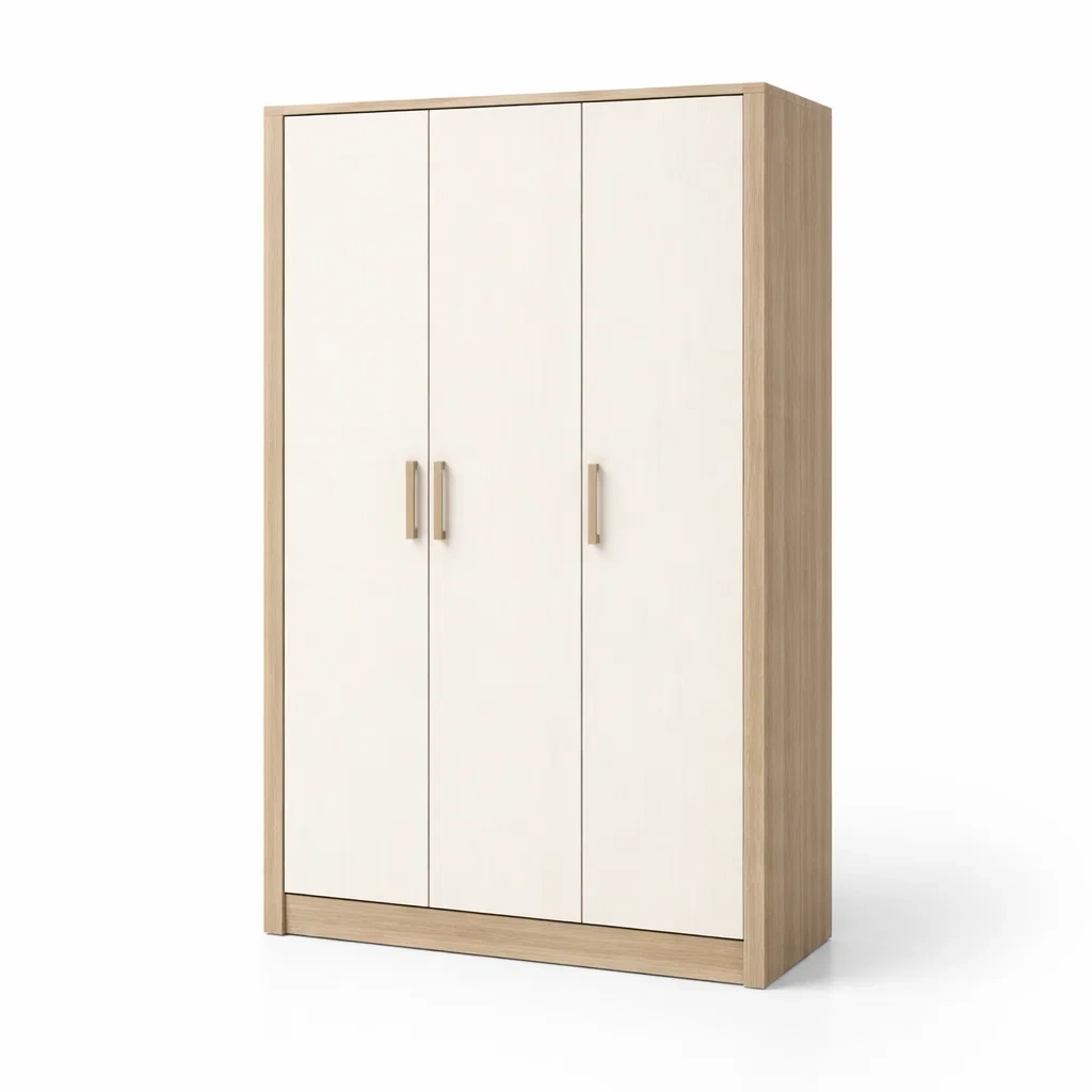 Corps en panneaux de particules avec finition mélaminée chêne et blanc.