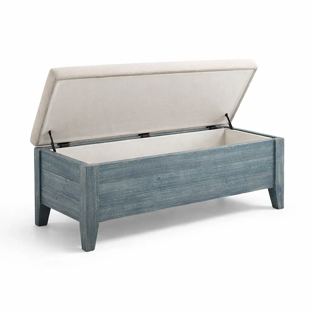 Fonction : Offre un espace de rangement avec un couvercle rembourré servant de siège