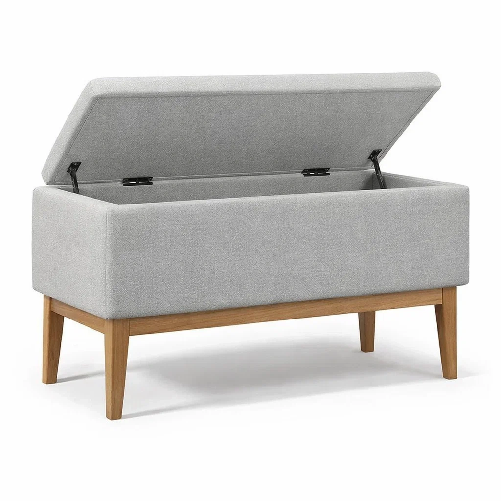 Banc de rangement en tissu polyester avec pieds en bois massif