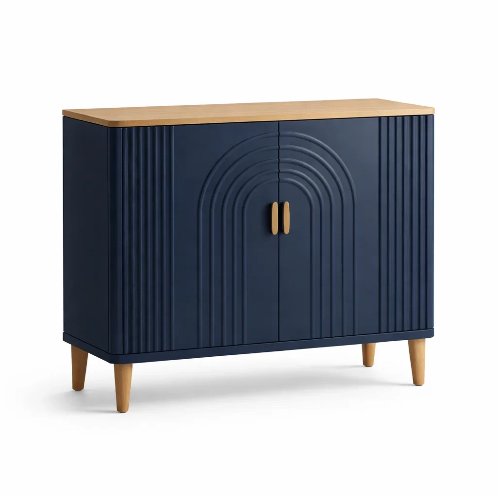 Ce buffet comprend deux portes avec poignées, offrant un espace de rangement.