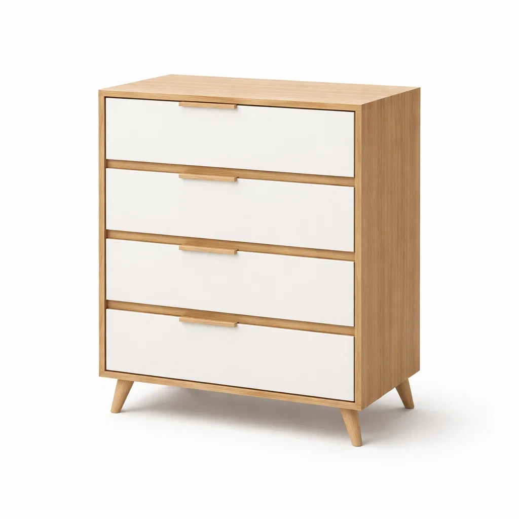 Matériau : MDF pour les tiroirs, placage chêne pour la structure
