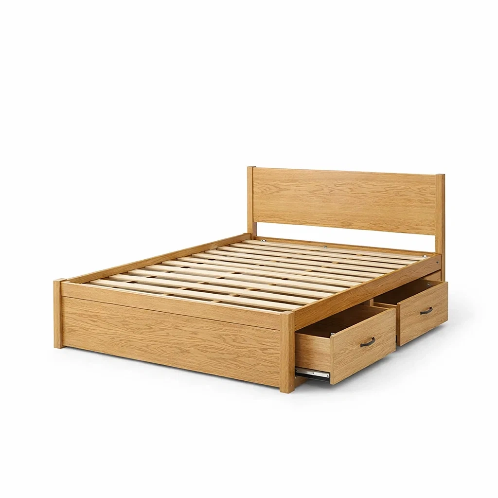 Lit avec rangement double en bois de chêne avec tiroirs