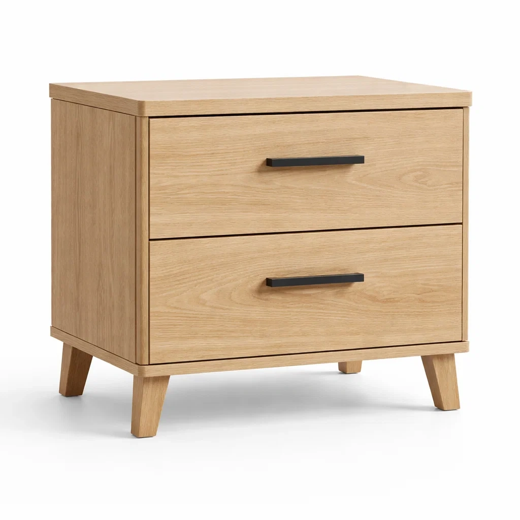 Table de chevet en bois chêne clair avec tiroirs